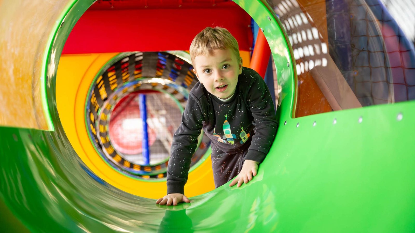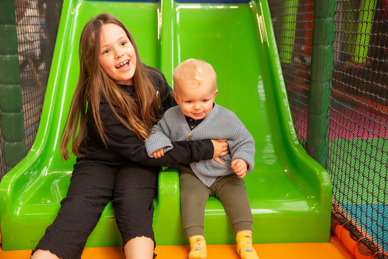 We provide a safe, fun and high quality entertaining environment for all children up to the age of 11. Max height to play 4’10” (148cm). We have separate baby, toddler and junior play areas. Our giant multi story play frame for children includes tunnels, multiple slides, sports court and more. Our cafe offers a variety of meals, quick bites, freshly ground coffee, treats and homemade cakes.